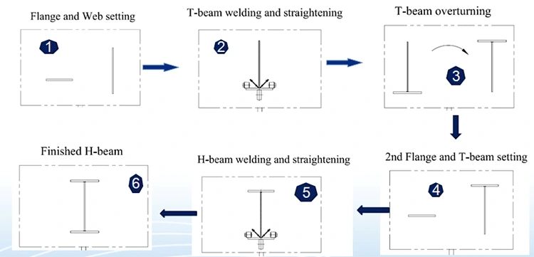 टी बीम आणि एच-बीम उत्पादन प्रवाह