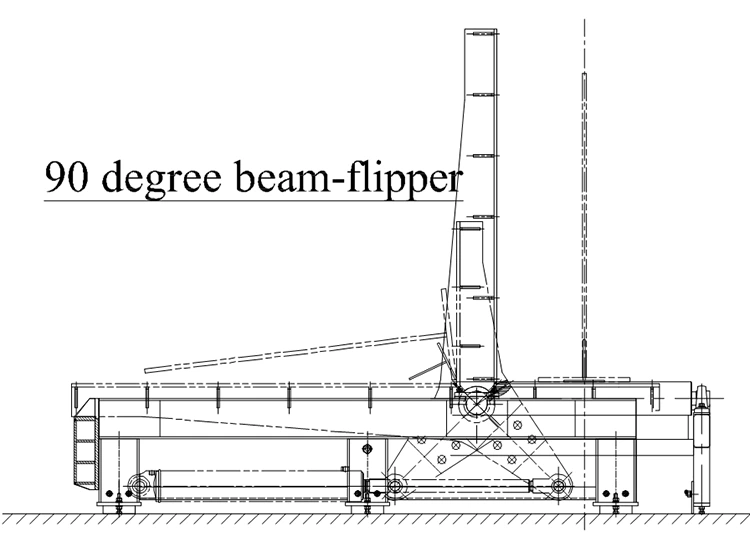3.3 क्षैतिज स्थितीत वेल्डेड बीम उलथून टाकण्यासाठी 2 व्या वेल्डिंग स्टेशनच्या आउटपुट रोलर टेबलवर 90 डिग्री बीम फ्लिपरचा एक संच जोडण्यासाठी.