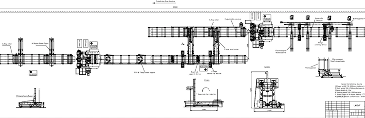 वर आधारित, आम्ही क्षैतिज स्थितीत वेल्डेड बीम उलथून टाकण्यासाठी आउटपुट रोलर टेबलवर 90 डिग्री बीम फ्लिपरचा एक संच जोडू शकतो.